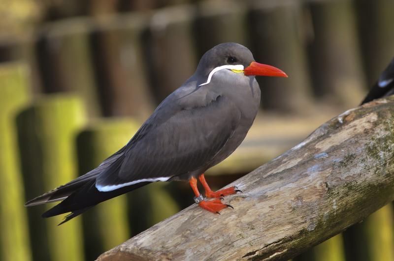 It is easily distinguishable from other tern species by its slate-grey plumage that is interrupted by white “moustaches” that extend behind the bill for about 2 inches (5 centimetres). Both sexes have this feature. The Inca tern can also be recognized from its bright red bill and feet.