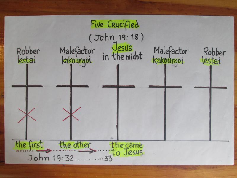 Religious tradition has taught us badly about this matter. They made us believe that when the soldiers proceeded to break the legs of the so-called two thieves: the soldiers broke the first thief's legs, then, without going through Jesus, they walked around his cross (which was actually a tree), reaching where the second "thief". And then, when the soldiers returned to where Jesus was, they realized that he was already dead, so there was no need to break his legs.