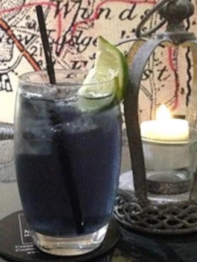Slowly top up with soda and stir gently to mix the colour throughout. Garnish with a lime wedge and enjoy.