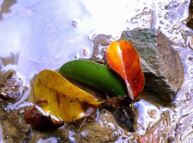 Note: The photograph that illustrates this publication I took after the rain and portrays three small leaves of the ficus benjamina tree also known as 'evergreen' because its leaves remain green all year round.